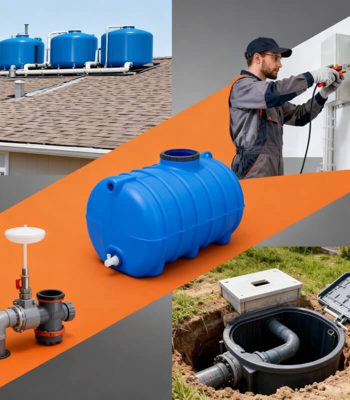 • Depósitos de Água: Caixas d’água em polietileno (310L a 10.000L) e tanques reforçados.