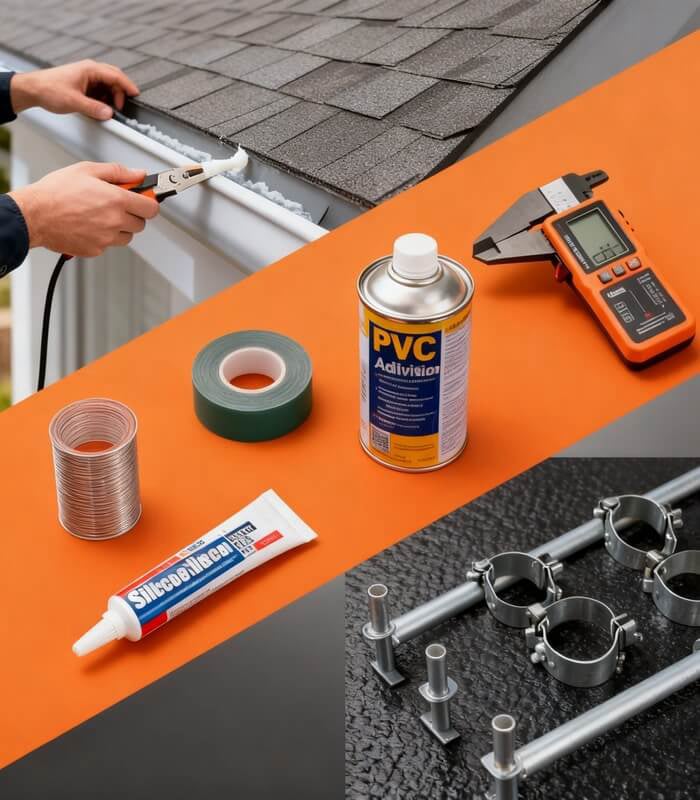 • Fixação: Abraçadeiras metálicas e plásticas, suportes para tubagem e silicones veda-calha/multiuso.